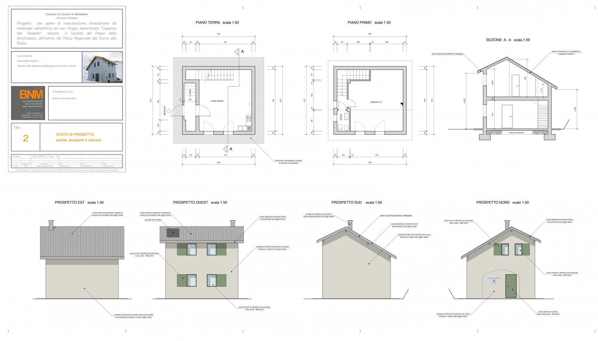 Progetto per opere di manutenzione straordinaria da realizzare nell'edificio ad uso rifugio, denominato "Capanna del Sasseto", ubicato in località del Passo dello Strofinatoio, all'interno del Parco Regionale del Corno alle Scale.