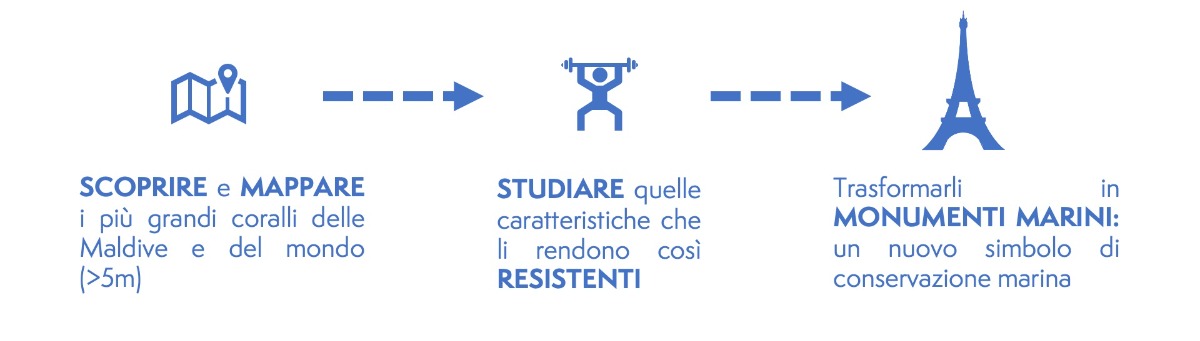 Map the Giants is a project that aims to study and safeguard the largest coral colonies in the world, starting from the Maldives. The campaign's goal is to raise the funds needed to finance a scientific expedition to explore the most remote atolls in the south of the Maldives. Indeed, these areas, still partially unexplored, seem to have the characteristics suitable for hosting the last specimens of giant corals.