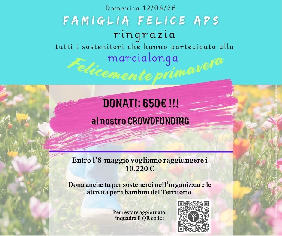 FamigliaFelice è un’associazione che crede nel potere dell’educazione come strumento di cambiamento, di crescita personale e collettiva. Nasce dal sogno di offrire ai bambini un luogo dove sentirsi accolti, liberi di esplorare, imparare e sbagliare, circondati da adulti che li accompagnano con rispetto e fiducia. Un luogo dove ogni famiglia possa sentirsi parte di una comunità viva, che educa insieme, con cuore e consapevolezza. Famiglia Felice aps gestisce il Montessori International Centre, una realtà unica nel territorio: un centro educativo che accoglie bambini e ragazzi dall’infanzia alle scuole medie, seguendo il metodo Montessori in un ambiente immersivo in lingua inglese. Le nostre insegnanti madrelingua e certificate accompagnano ogni alunno in un percorso di apprendimento autentico, basato sull’esperienza diretta, sull’autonomia e sul rispetto dei tempi individuali. In ogni classe si respira curiosità, serenità e gioia di imparare. Crediamo in un’educazione che prepari alla vita, non solo alle verifiche: un’educazione che unisce mente, mani e cuore. Nei nostri spazi, ogni materiale è pensato per stimolare il pensiero critico, la creatività e la collaborazione; ogni giornata diventa un’opportunità per crescere nella libertà e nella responsabilità. Famiglia Felice è anche una casa per le famiglie, un punto di incontro dove si condividono esperienze, si costruiscono legami e si promuove una cultura educativa basata sul valore del rispetto e sulla sostenibilità. Ci impegniamo a rendere il Centro un luogo bello, caldo e accogliente — non solo nel senso fisico, ma anche umano — dove i bambini possano sentirsi al sicuro, sognare in grande e costruire il proprio futuro. Con il crowdfunding vogliamo rendere il nostro Centro ancora più sostenibile e accogliente: installare caldaie ecologiche, migliorare gli ambienti e l'outdoor, ampliare l'offerta a più famiglie e crescere futuri cittadini del mondo, consapevoli e felici.
