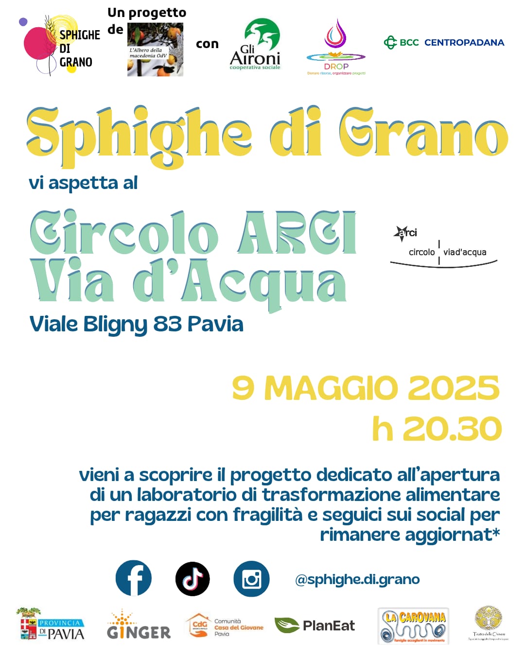 Il 9 Maggio saremo al Circolo ARCI Via d'Acqua dalle 20:30 per conoscervi facendo due chiacchiere sul progetto Sphighe di grano.