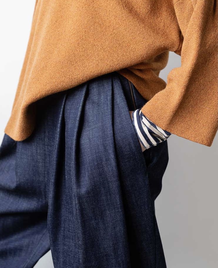 Visti appesi possono apparire fuori misura per la quantità di stoffa che salta all’occhio ma una volta indossati riprendo la loro forma iniziale ma soprattutto si adattano alla tua accompagnandoti nei movimenti.