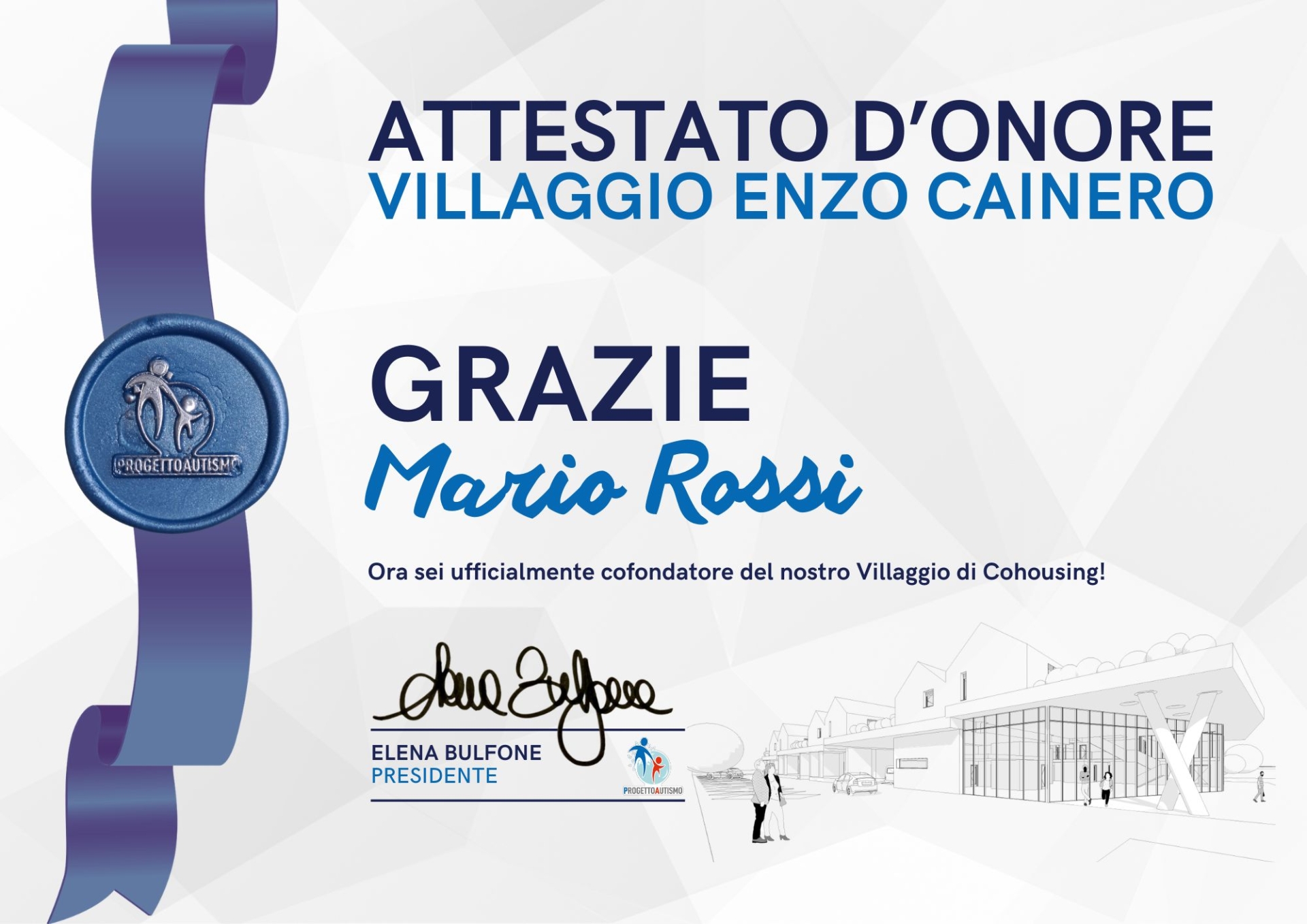 Il Villaggio "Enzo Cainero" è il nostro impegno a garantire sicurezza, dignità e continuità affettiva. È la nostra risposta per dire finalmente: "Il loro futuro è al sicuro."