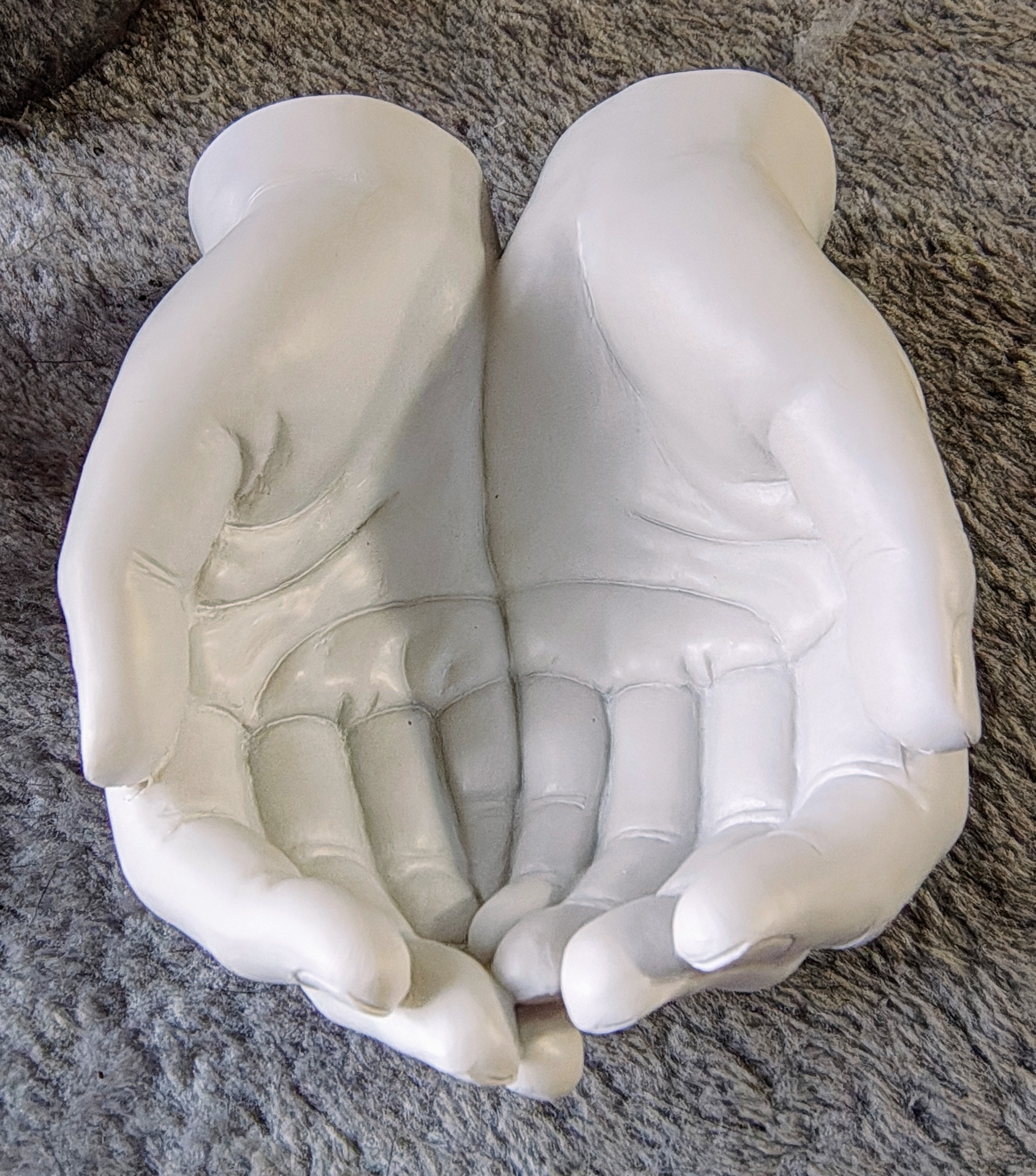 L’opera avrà una base dell’altezza di circa 130 cm sulla quale poggeranno le mani, realizzate artigianalmente incidendo e lavorano un blocco di marmo bianco, mani che porgeranno la goccia di sangue.