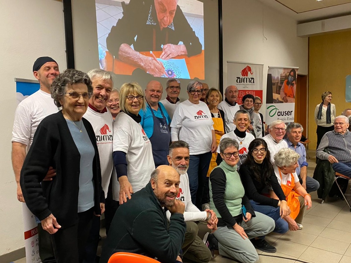 AIMA Associazione Italiana Malattia di Alzheimer Reggio Emilia è una ODV, Organizzazione di Volontariato, nata il 14 marzo 1997. La missione perseguita dall’associazione è favorire la miglior qualità possibile della vita delle persone con demenza e il benessere dei loro caregiver. Per conseguire la nostra mission, realizziamo diverse attività a livello provinciale rivolte a: - persone con demenza (attività di aggregazione e recupero della socializzazione con laboratori creativi, stimolazione di ricordi ed emozioni, attività ludiche e di movimento, musica, feste e gite); - caregiver (sostegno informativo ed emotivo, orientamento nella rete dei servizi, consulenze psicologiche, legali, ambientali, gruppi di sostegno); - Enti Pubblici (stimolo e sensibilizzazione, formazione e aggiornamento operatori); - alla cittadinanza (corsi di prevenzione, corsi di formazione e informazione sulle diverse problematiche della malattia). Le attività proposte sono gratuite e aperte a tutti. La demenza rappresenta oggi un problema sociale e culturale, perché il numero di casi diagnosticati è in costante aumento e questa malattia coinvolge non solo le persone che vivono con la demenza ma ha anche importanti ricadute sui caregiver e l’intero nucleo familiare: ogni anno in provincia di Reggio Emilia vengono diagnosticati dai Centri Disturbi Cognitivi e Demenze più di 1.600 nuovi casi di demenza. Il percorso di accettazione della diagnosi è molto complesso, spesso segnato dallo smarrimento, dalla negazione della realtà di malattia e dalla ritrosia a chiedere aiuto: si tende a fare da soli. Un’altra difficoltà è determinata dalla convinzione di “non potere fare più nulla”, poiché attualmente non esistono farmaci in grado di guarire la malattia. Eppure sappiamo dalla letteratura e abbiamo verificato nell’esperienza che le cure più efficaci sono la relazione, la socializzazione, la possibilità di esprimere ciò che ancora si è in grado di fare e di essere.