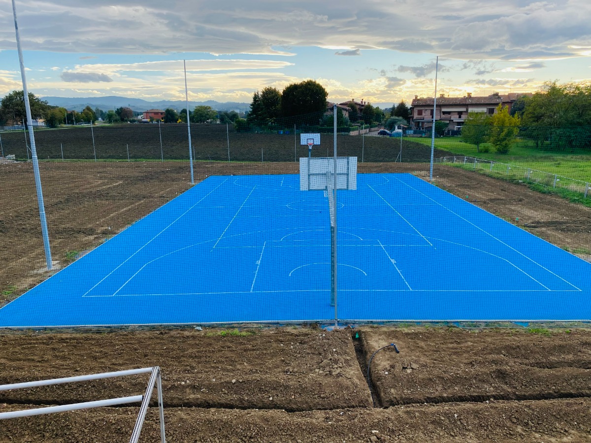 Avanzamento lavori: posa del terreno di gioco del campo polivalente