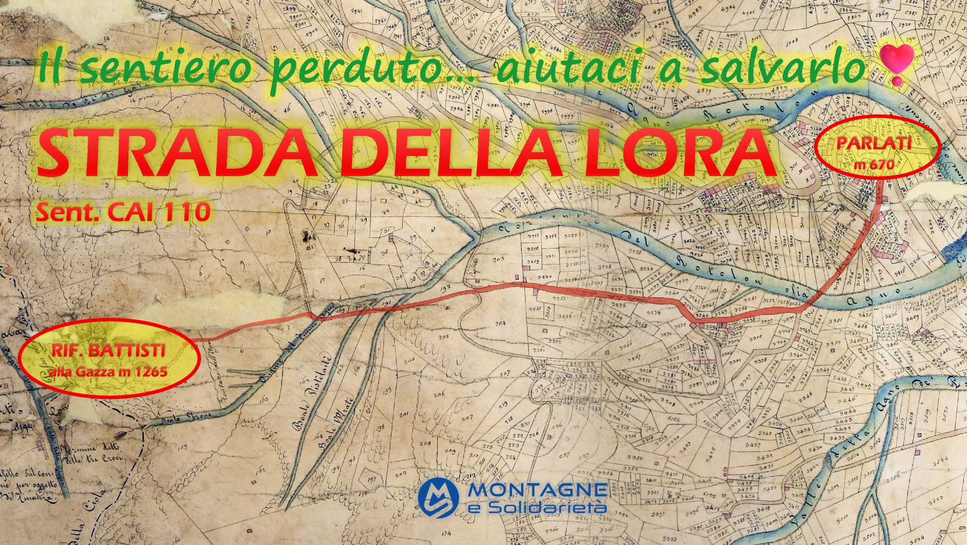 Con il tuo aiuto, procedendo a step progressivi in base ai fondi raccolti, recupereremol’antica Strada della Lora rendendola nuovamente riconoscibile e percorribile.