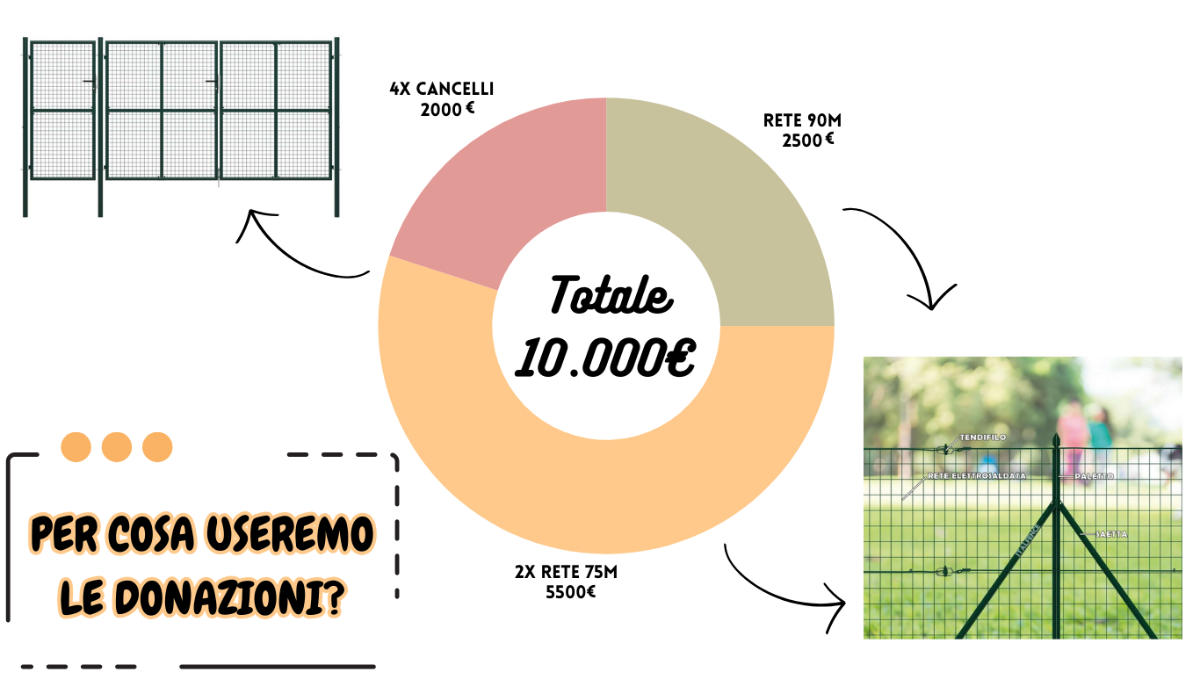 E siccome per nutrire gli animali e per pagare le cure e le voliere servono soldi, una squadra di volontari si occupa di raccolta fondi e sensibilizzazione sul territorio, in eventi di vario tipo. Questa è la nostra realtà, questo il nostro volontariato; ma per continuare a mantenerli e farli crescere abbiamo ora bisogno del vostro aiuto. Non abbiamo più spazio e dovremo spostarci presto su un nuovo terreno. Il primo e più importante passo, nella sua semplicità e tecnicità, per realizzare il sogno di un centro all’avanguardia, destinato a diventare un fiore all’occhiello in Veneto e forse anche in Italia, è l’acquisto con relativa messa in posa del materiale destinato alla costruzione della recinzione perimetrale della futura struttura.