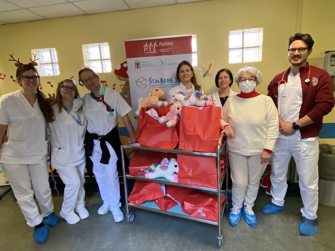 POLICLINICO PADOVA ONCOEMATOLOGIA PEDIATRICA OPERATORI SANITARI CON PRESIDENTE AIL DONO PELUCHE