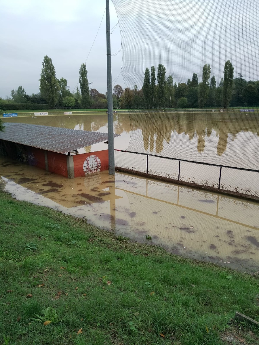 Ma come detto abbiamo la necessità di fare tante cose, l'acqua ha causato danni consistenti alla nostra struttura sportiva, alle attrezzature e al campo da gioco, sommerso da oltre 2 metri d'acqua e fango. Abbiamo necessità di riparare ed in molti casi sostituire tante cose, in ordine sparso e non esaustivo, dobbiamo ripristinare il tunnel coperto per le attività invernali, sostituendo l'erba sintetica presente all'interno, rifacendo i due monti di lancio, l'impianto elettrico e riacquistando le due macchine lancia palle presenti all'interno. Passando invece al campo da gioco, una volta defluita l'acqua e tolto il fango presente, andrà effettuata la rizollatura del verde ed il ripristino della terra rossa che costituisce il diamante (questo comporterà l'acquisto di molti quintali di terra specifica), andranno sostituite le basi di gioco, mentre il monte di lancio dovrà essere ripristinato inserendo nuovamente l'argilla (oltre alla terra rossa), il "cage" di battuta completamente distrutto andrà probabilmente acquistato ed andrà fatta la ristrutturazione dei due "dugout" molto danneggiati. Inoltre nel perimetro del campo sono stati rovinati pesantemente, il tunnel gonfiabile - dotato di pompa a motore - utilizzato durante le dimostrazioni del gioco nelle scuole e nelle piazze, un trattore rasa erba con raccoglitore laterale e l'officina che conteneva tutti gli attrezzi (anche elettrici) per le manutenzioni ordinarie del campo e dei trattori tosa erba, le recinzioni metalliche del campo da gioco, le panchine predisposte per il pubblico, infine anche il magazzino si è purtroppo allagato compromettendo l'utilizzo delle palline presenti (circa 200) delle mazze di legno e dell'abbigliamento della nostra società.