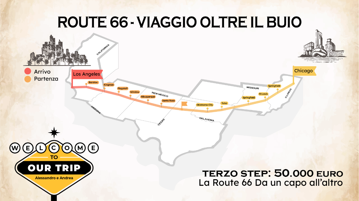 Vivremo l'intera Route 66, seguendo tutte le tappe che compongono il suo tracciato storico.