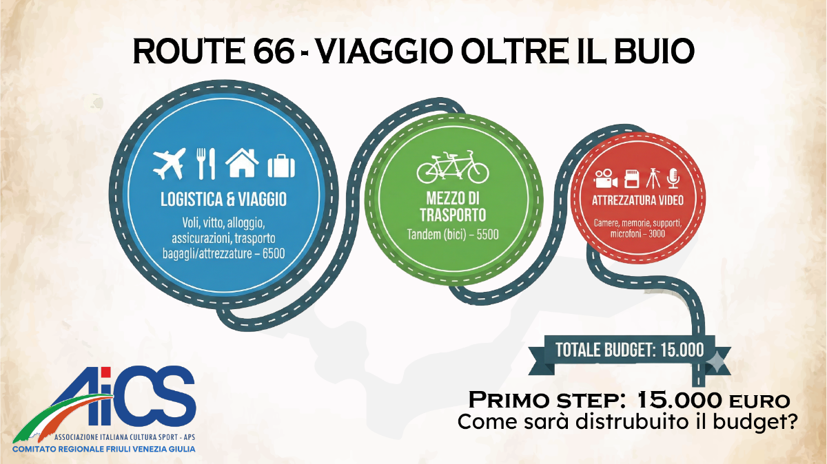 AICS FVG ha deciso di supportare la nostra iniziativa perché in linea con i valori promossi dall’Ente di inclusione e accessibilità dello sport e ci assisterà in tutto il viaggio.