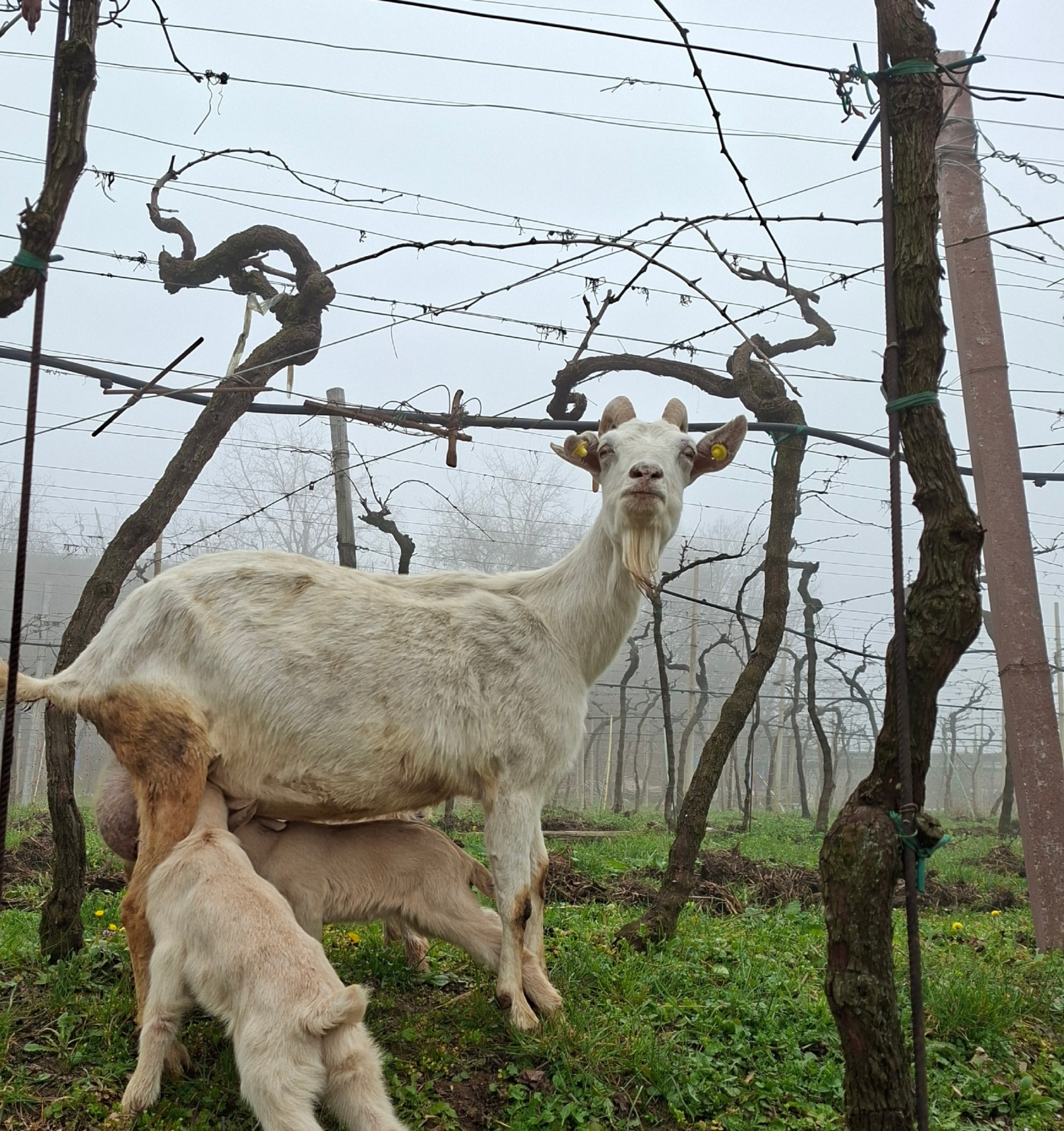 A Cascina Albaterra viene allevata, tra gli altri animali, la Pecora Brogna della Lessinia, una razza autoctona profondamente legata al territorio veronese. Il gregge è grigio e bianco, ma quando nasce una pecora più scura o nera — raccontano i malgari della Lessinia — significa che il gregge è autentico.