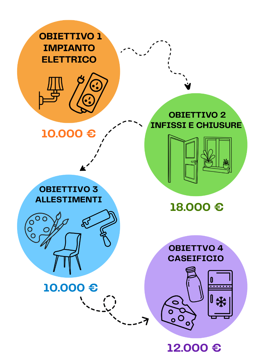 Il prossimo passo è raccogliere altri 18.000 €, necessari per installare porte e finestre negli ambienti della Cascina. Un intervento essenziale per rendere gli spazi protetti, funzionali e utilizzabili in ogni periodo dell'anno.