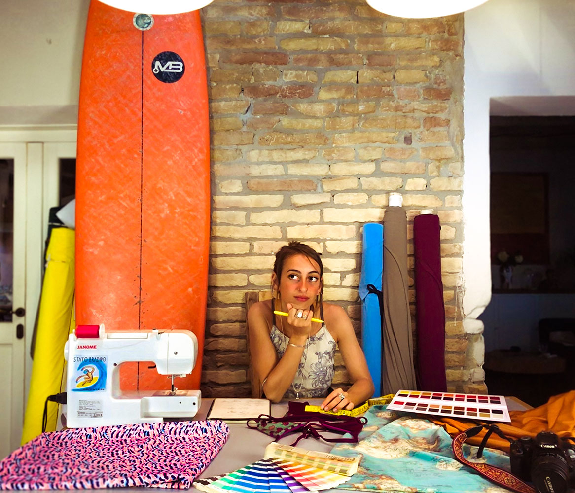 Sono Nina Benini Frajese, creativa di 23 anni, generalmente fortunata, figlia di artisti e creatrice di STATO BRADIPO® creato con calma. Sono cresciuta in un ambiente stimolante e libero, in una casa-laboratorio a Castiglione di Cervia, in Emilia Romagna. In compagnia di amici, colori, creta e macchine da cucire ho sperimentato la creatività quotidiana, imparando dai miei genitori che nella vita si può arrivare dove si vuole, nella fiducia e nel rispetto degli altri. Credere in un progetto è il primo passo per la realizzazione e così ho sempre creduto in me stessa, a volte avvilendomi, molte volte sbagliando, ma sempre con un lieto fine. Dopo il Liceo Artistico di Ravenna, e una prima esperienza su una tavola da surf, ho vissuto il primo miglior anno della mia vita viaggiando e lavorando in Western Australia in un furgoncino giallo. Un’avventura che ha segnato il mio ideale di vita: libero, intraprendente e creativo. Così è nato STATO BRADIPO®, per seguire uno stile di vita che mi ha ispirato e un po’ per provocazione al ritmo frenetico che proprio non mi si addice. Nell'estate 2017 mamma mi cuce il primo costume da surf, un'ispirazione che mi porta a vivere 6 mesi sull'isola di Fuerteventura a vendere le mie creazioni. Questo percorso mi ha ispirata sempre di più, orientandomi verso una concezione di abbigliamento alternativa, consapevole e artigianale. Così, partendo da un corso professionale di modellistica per costumi da bagno, ho incontrato donne incredibili, con una vita di conoscenza nel settore beachwear e tanta esperienza di cui ho fatto tesoro. Creo la prima vera collezione di costumi nel 2019! Una linea realizzata con cura nei minimi dettagli, criterio, metodo e passione; utilizzando stoffa italiana di prima scelta (riutilizzata da uno scarto di produzione emiliana di costumi di alta moda). STATO BRADIPO® è un invito a seguire il proprio ritmo, per sensibilizzare la concezione di abbigliamento e che possa ispirare a realizzare i propri sogni nel cassetto!