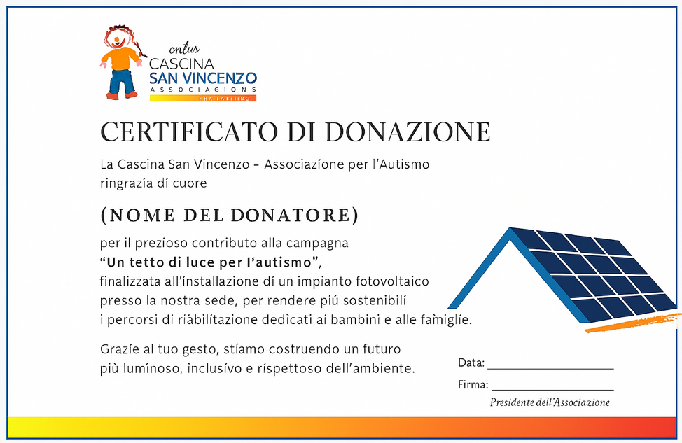 L’impianto fotovoltaico produrrà 18.000 Kw annui consentendoci un notevole risparmio di risorse economiche a favore delle nostre attività per l’autismo.