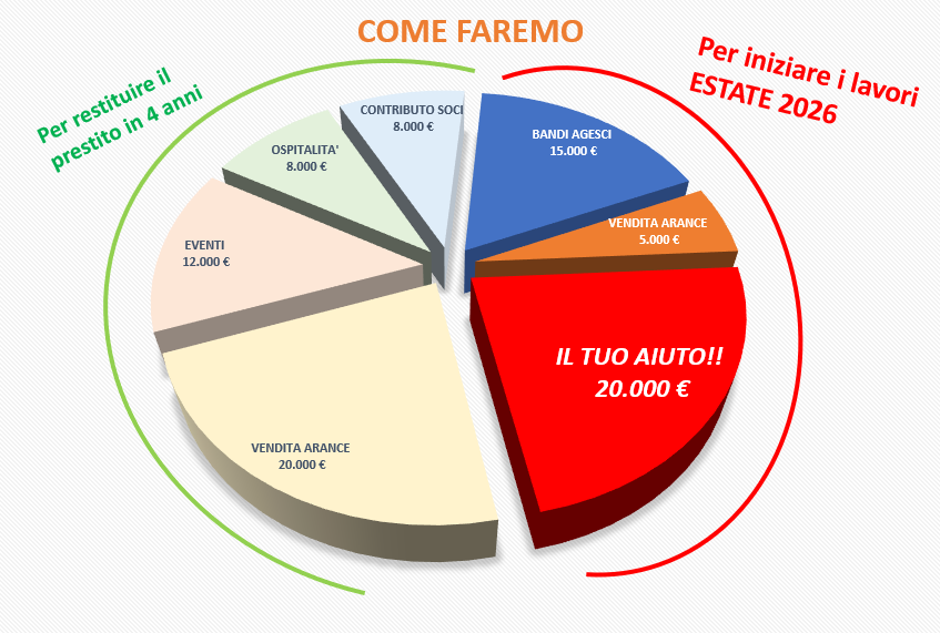 Per realizzare il lavoro nell'estate del 2026, dobbiamo poter pagare il 50% del costo come anticipo per la ditta che farà il lavoro. Finora, grazie agli sforzi dei nostri Capi e dei nostri ragazzi, siamo riusciti a raccogliere 20.000€.