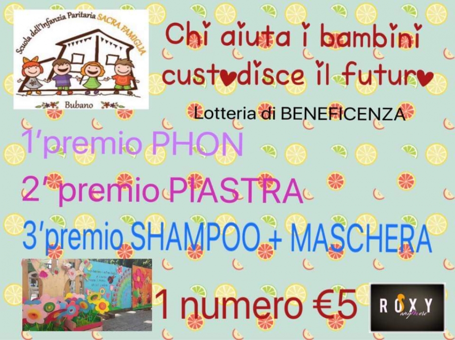 Siamo un gruppo di genitori rappresentanti della scuola d'infanzia Sacrafamiglia di Bubano. La nostra scuola è aperta dal 1919. All'apertura era gestita dalla principalmente dalle suore, poi nel corso degli anni la parrocchia ha assunto anche personale laico e da circa una quindicina di anni fa sono rimaste solo le dade, che ora sono 6: Ester, Rita, Floredana, Rosita, Monica e Sonia, guidate dalla direttrice Carmen Falconi. Il nostro rappresentante legale e' Don Antonio Commissari che è il nuovo parroco di Bubano dallo scorso settembre. I bambini frequentanti sono una settantina e sono suddivisi in tre sezioni: i giallini (dai 3 ai 4 anni), gli arancioni (dai 4 ai 5 anni) e i rossi (dai 5 ai 6 anni). Bubano è un paesino piccolino fra Imola e Lugo, e ha circa 2000 abitanti. La nostra scuola materna è l'unica materna che c'è in quando non c'è una materna comunale e anche questo è uno dei motivi per cui la scuola è cosi importante per il nostro piccolo paesino.