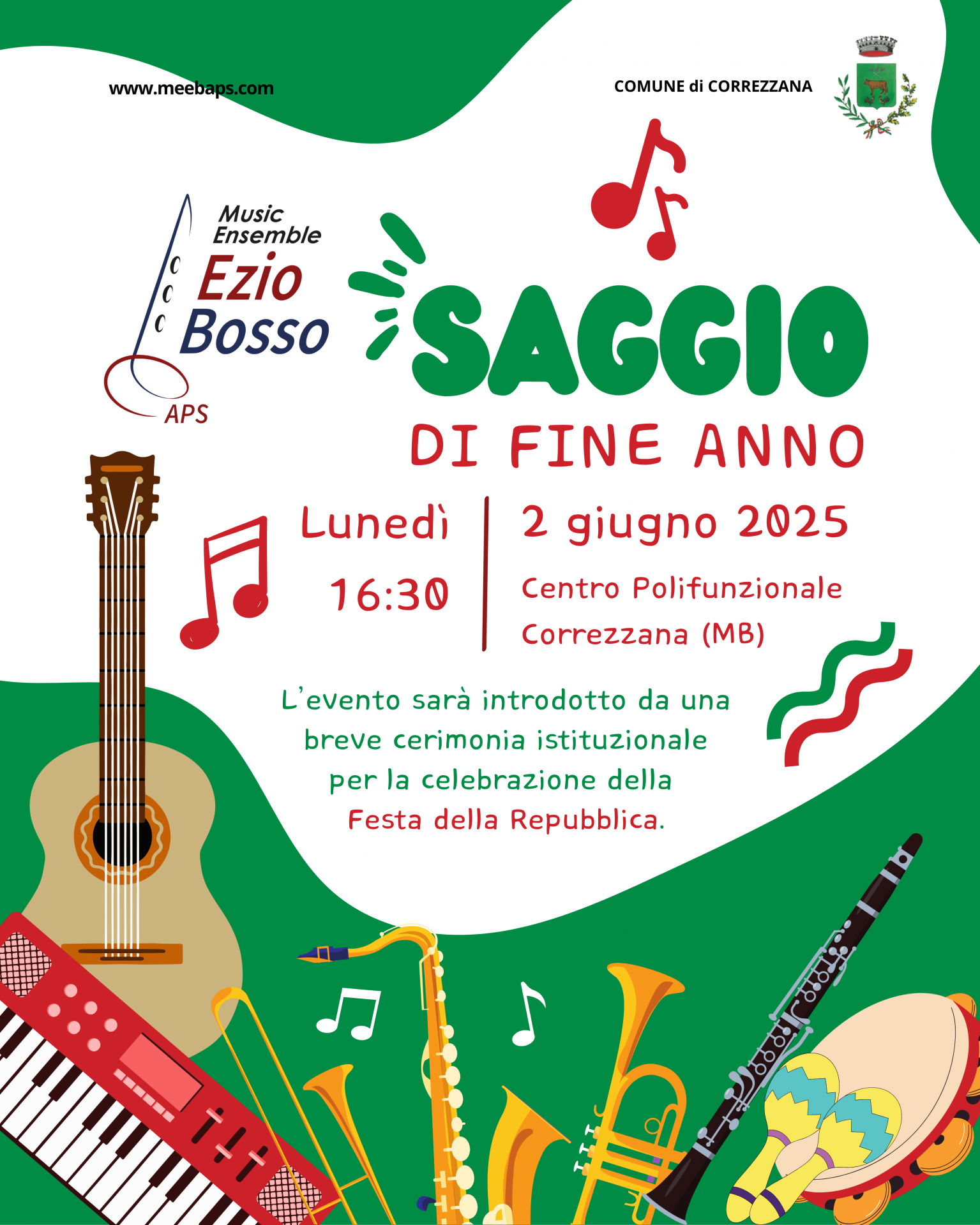 Vi aspettiamo numerosi alle ore 16:30, per festeggiare la Festa della Repubblica in musica. Aprirà la manifestazione il Music Ensemble Ezio Bosso per un momento istituzionale.