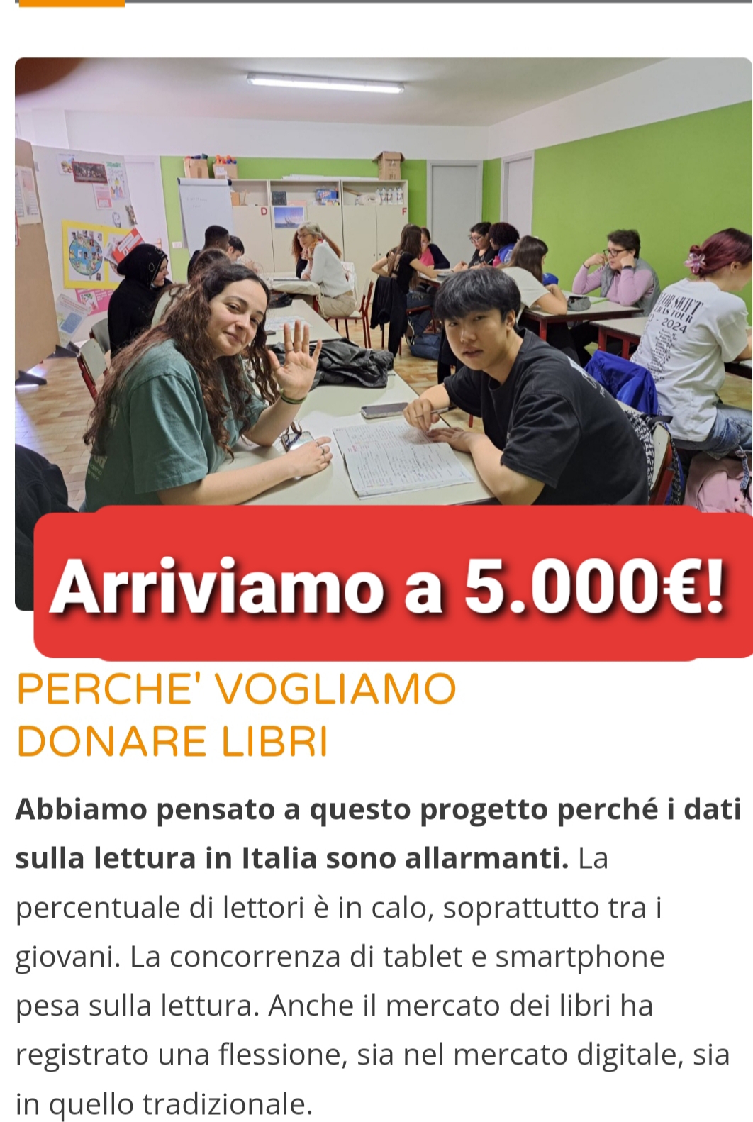 Ci piacerebbe essere in tantissimi a sostenere questo Progetto. E siamo sicuri che in questo ultimo tratto di strada che manca qualcuno si unirà alla raccolta fondi per DONA UN LIBRO DONA FUTURO!