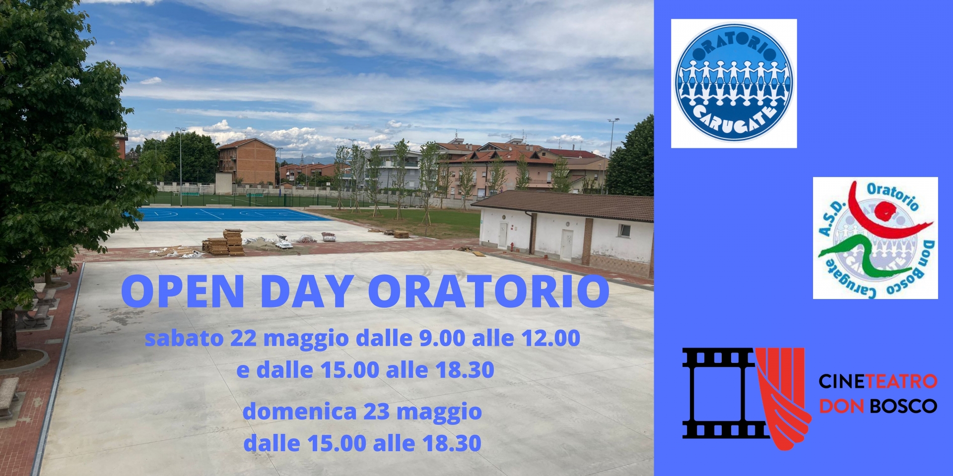 Molteplici le attività proposte durante l'Open Day: Giochi, partite e allenamenti aperti a cura di Asdo e dei giovani dell'oratorio, mostra con tutte le maglie dell'Oratoriade, visione video dei lavori di rinnovo dell'oratorio, presentazione del muro del grazie, visite guidare al CineTeatro.