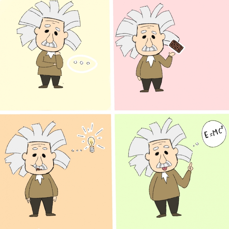 La vignetta nasce per sottolineare il fatto che anche un piccolo apporto di glucidi come il cioccolato può sollecitare la mente l’arte e la fantasia