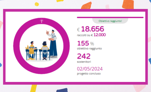 Questo è stato possibile grazie al generoso sostegno di quanti credono nell’importanza di questa iniziativa. Insieme abbiamo raggiunto il 155% dell’obiettivo previsto, per un totale di €18.656 raccolti grazie a quasi 250 donatori.