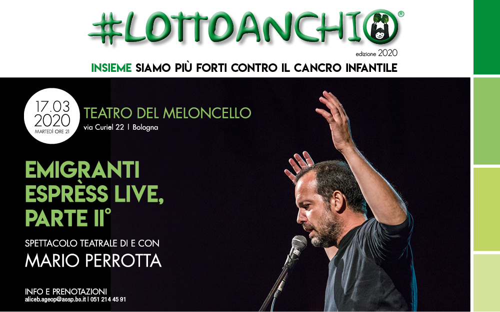 Informiamo i donatori che hanno acquistato il biglietto per lo spettacolo che potranno trasformare la quota versata in una donazione a sostegno di #LOTTOANCHIO, oppure chiedere il rimborso totale alla mail aliceb.ageop@aosp.bo.it