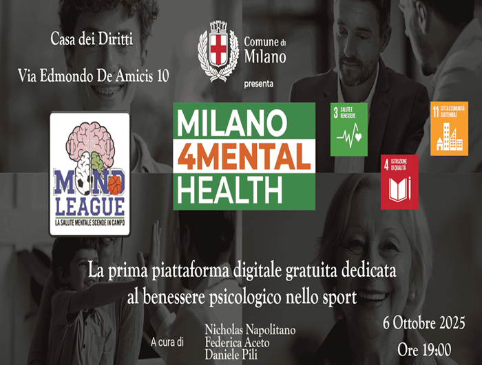 Lunedì 6 ottobre 2025, alle ore 19:00, MindLeague presenterà ufficialmente il suo progetto alla Casa dei Diritti del Comune di Milano (Via Edmondo de Amicis, 10, Milano) in occasione della manifestazione Milano4MentalHealth, lanciando contestualmente la piattaforma digitale formativa a libero accesso per allenatori ed educatori.