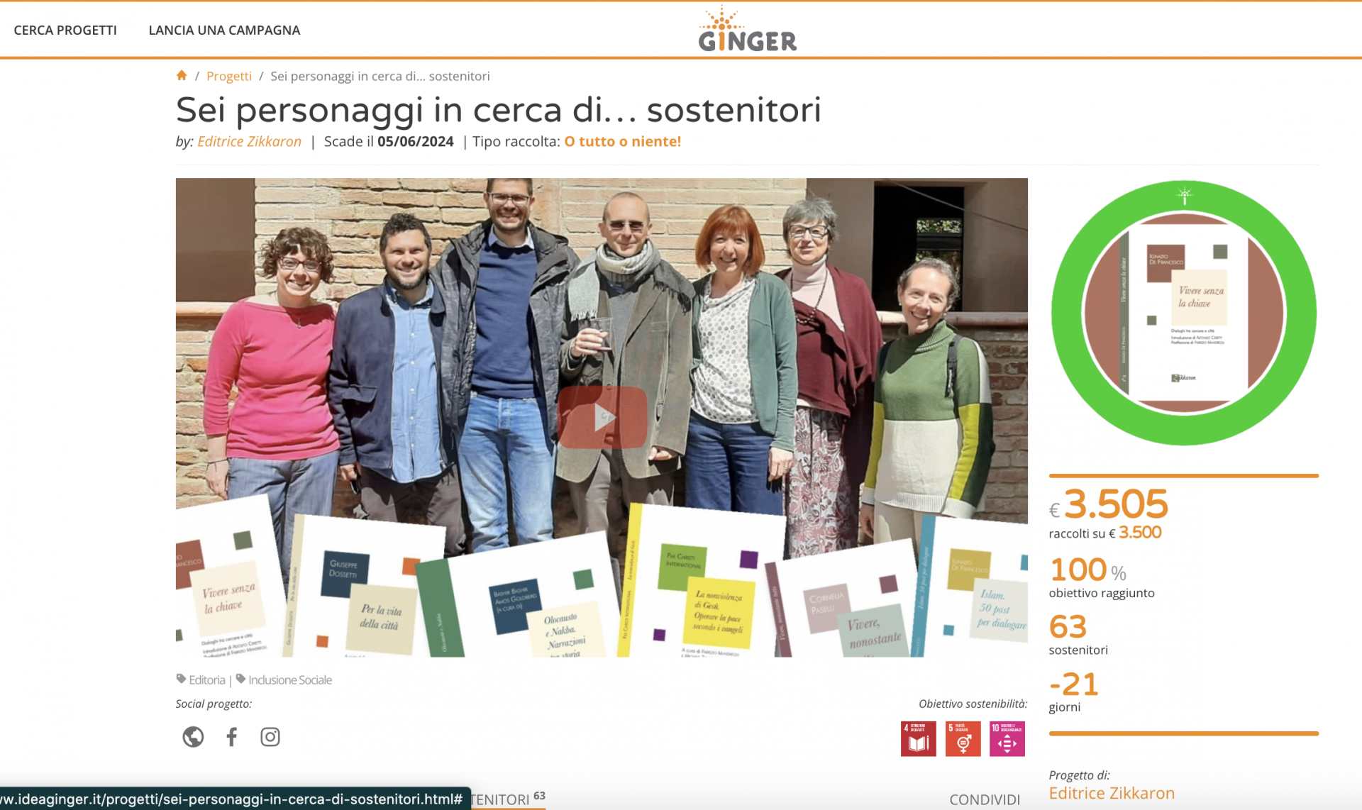 Zikkaron, parola ebraica che significa “ricordo”, è una casa editrice creata nel 2016 dalla comunità monastica di Monte Sole, il cui fondatore è Giuseppe Dossetti. Da aprile 2021 è l’Associazione Insight che porta avanti il progetto editoriale. L’impegno è pubblicare libri e organizzare eventi culturali per rielaborare le memorie del passato, come strumento prezioso per interrogarsi sulla società contemporanea. L’attenzione è verso la cura la parola, in modo artigianale e preciso. Le tematiche dei nostri libri e dei nostri eventi: - memoria dei fatti tragici e delle stragi, delle loro cause prossime e remote, che hanno caratterizzato la storia di tante comunità civili e religiose nel Novecento fino ai nostri giorni, e in particolare nel territorio di Monte Sole; - la riscoperta di testi di Giuseppe Dossetti, con apparati critici attualizzati; - la promozione del confronto e della conoscenza di diverse culture e religioni e delle istanze legate al dialogo interreligioso e interculturale; - ricerche-azione per dare voce alle periferie della società. www.zikkaron.com editrice.zikkaron@gmail.com