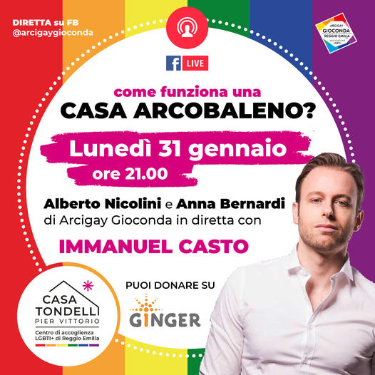 Vi aspettiamo lunedì 31 gennaio, sui nostri canali social, dove, alle 21.00, il nostro presidente, Alberto Nicolini, dialogherà insieme ad Anna Bernardi, infermiera e consigliera di direttivo, e Immanuel Casto, attivista LGBTQIA* e artista.