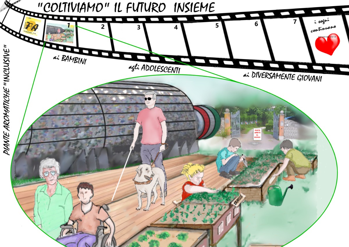 E’ vero il sogno è grande ‘’ 7 PASSI per il FUTURO’’ sono una grande sfida ma con te abbiamo RAGGIUNTO il 1° PASSO ERBE AROMATICHE per bimbi, bimbi ciechi e bimbi con disabilità per un’inclusione in uno spazio speciale al parco dove nascerà il BORGO Cohousing.