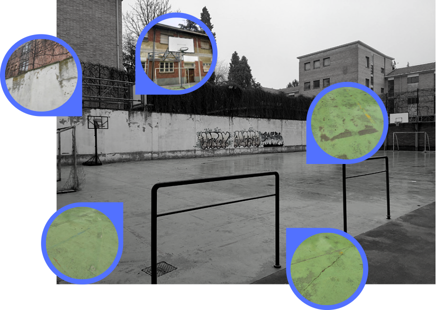Oggi, purtroppo, il campetto non è più un luogo sicuro e accogliente: il rivestimento in resina è ormai consumato, rendendo il terreno scivoloso e impraticabile per bambini e sportivi più o meno giovani. Non si riconoscono più neanche le linee del campo, il dischetto del rigore o il limite dell'area dei tre punti!