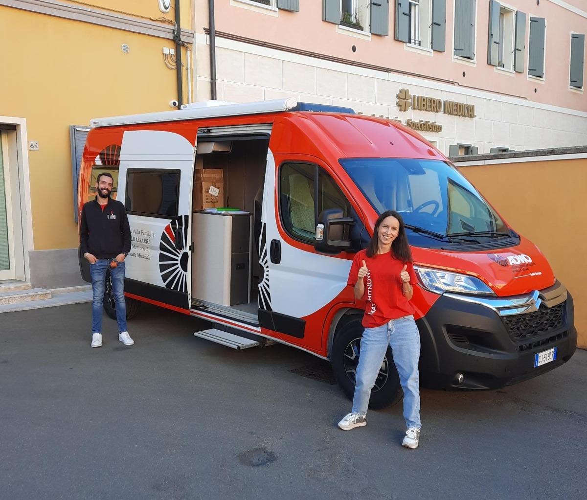 Quando realizziamo un'iniziativa sono necessari gazebo, roll-up, tavoli, sedie, materiale informativo, kit salivari, moduli per l'iscrizione, ecc. Non tutte le auto sono così spaziose da poter caricare tutto il necessario. Inoltre, se l’iniziativa è in centro in zone ZTL, il mezzo associativo può andare ma gli altri no.