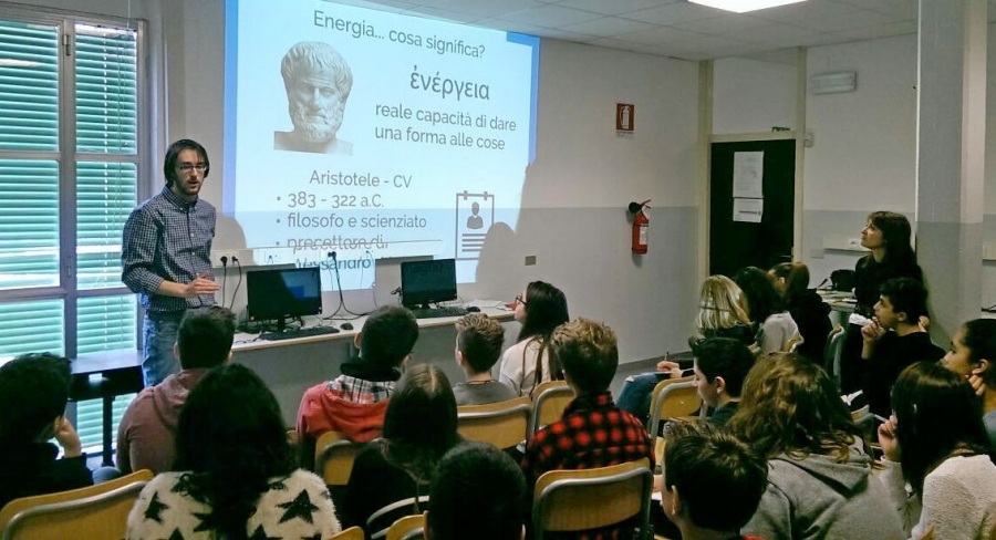 Nelle foto Giovanni Anceschi (foto 1) e Luca Boschini (foto 3) di Energy WAY in classe con gli studenti.