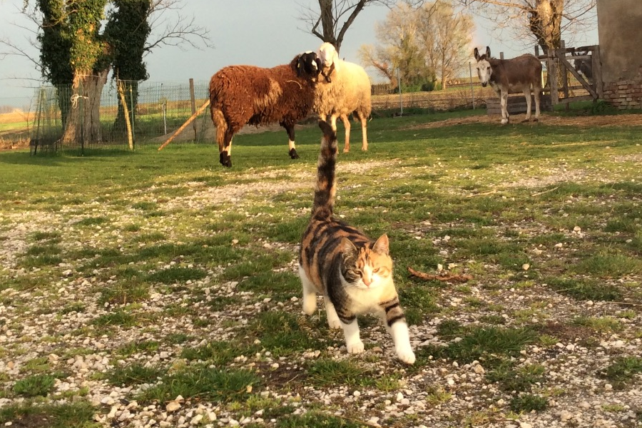 Lo spazio che ospita queste attività è una splendida aia contornata dal verde dei campi poco fuori Faenza, con una casa di campagna e un bel fienile. Qui vivono due simpatiche asinelle, due pecore coccolone, chiocce e pulcini che razzolano felici e gatti di grand dolcezza. Un luogo immerso nei suoni e nei colori della natura che cambia stagione dopo stagione; un posto che regala sin dal primo momento la sensazione di approdare in un angolo felice di mondo.