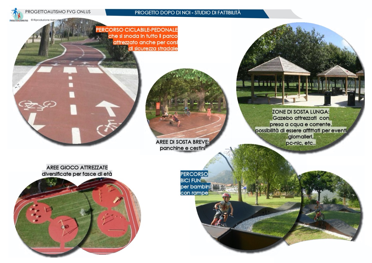 È infatti nostra intenzione adibire una parte dei terreni a pista ciclabile di guida sicura dove poter insegnare le regole base dell’educazione stradale e dove poter utilizzare risciò e tandem per esperienze condivise fra persone con autismo, famiglie e amici, il tutto ovviamente aperto al territorio e a visitatori esterni, in un contesto verde che verrà curato dagli stessi ragazzi con autismo.
