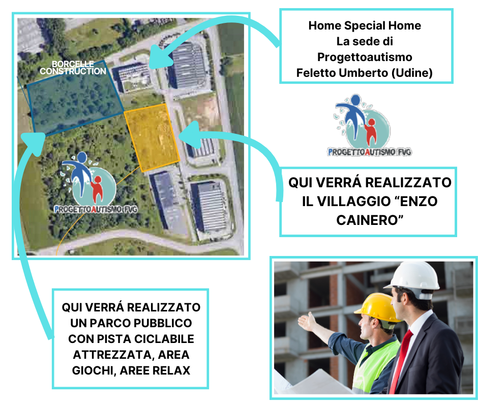 Un progetto come il Villaggio “Enzo CAINERO”, oltre a prevedere modalità realizzative indoor ed outdoor assolutamente innovative, a zero impatto energetico ed ecologico (con realizzazioni impianti geotermici, energia solare, pozzi d’acqua, ecc,.), l’impatto sociale sul territorio sarà importantissimo. Non solo perché permetterà la possibilità di poter accogliere per la riabilitazione altri 40 bambini grazie alla realizzazione di altre 4 stanze multisensioriali riabilitative e nuovi ambulatori, e neanche per la possibilità di ospitare 35 persone tra disabili e persone anziane, ma sarà un modello da prendere ad esempio. Un modello da replicare ed esportare. Proprio come già avvenuto con il nostro centro “Home Special Home”.