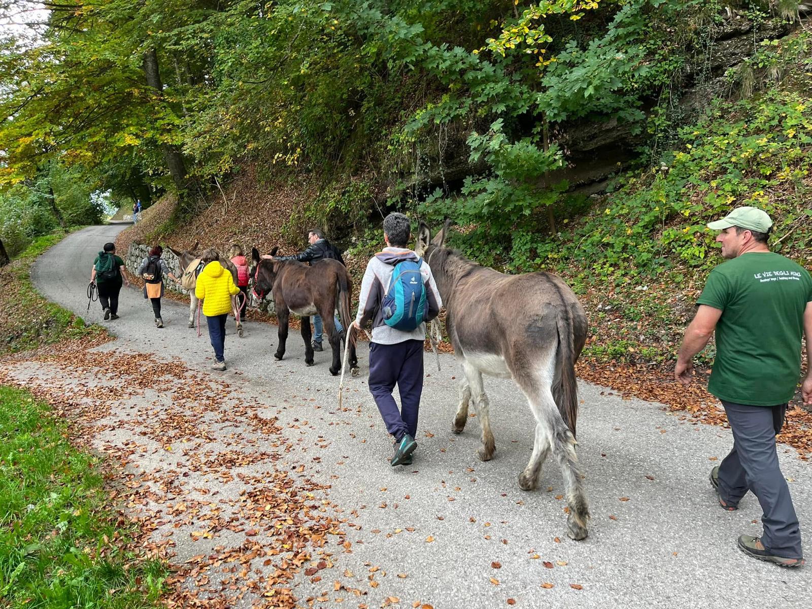 Le Vie degli Asini è una realtà associativa che lavora con la collaborazione di undici equini, che nel corso di un decennio di attività hanno raggiunto competenza con molte persone diverse e in contesti variegati. Vanta un'equipe di esperti psicologi psicoterapeuti, formati per lavorare con gli animali.