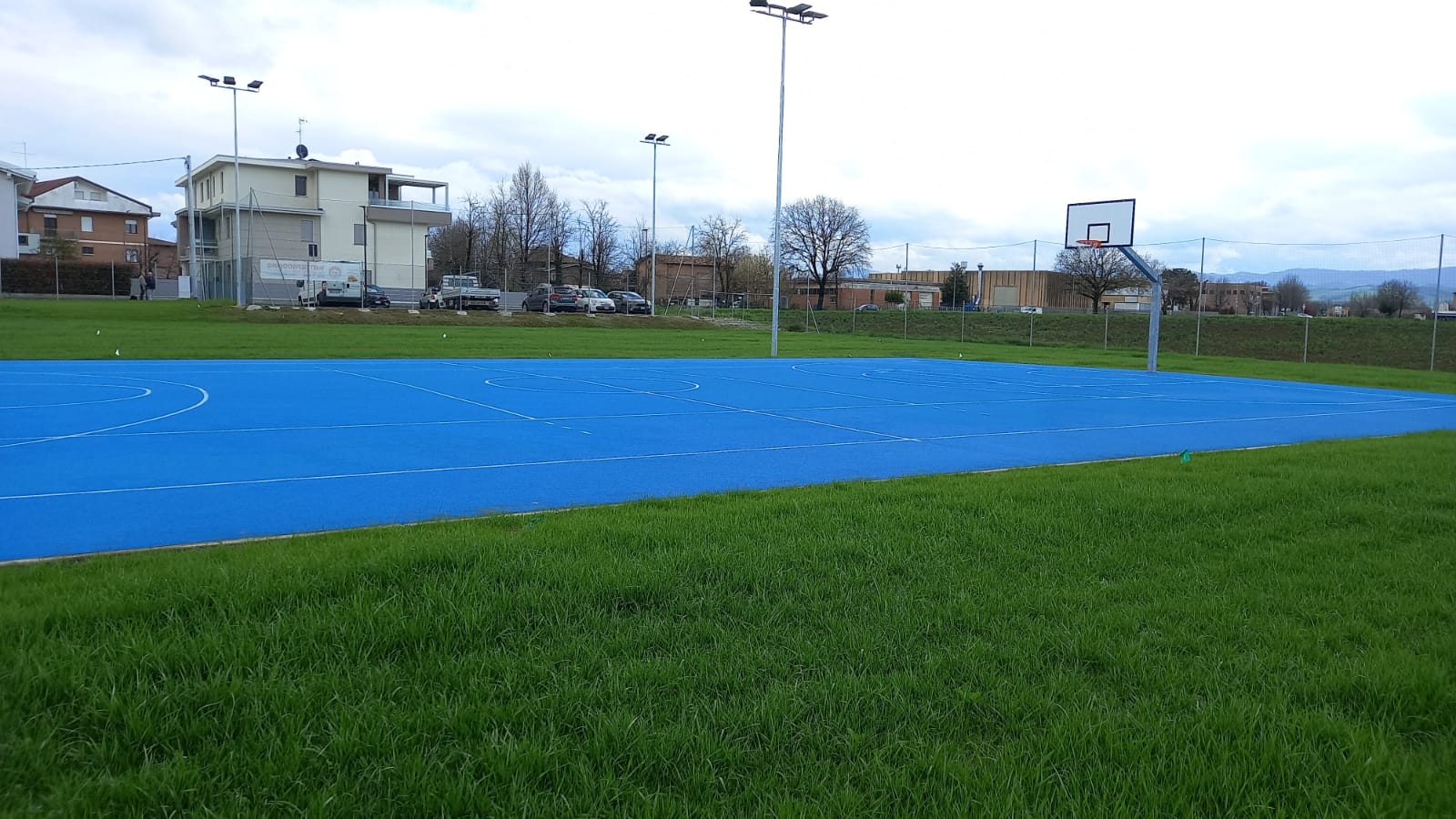 Avanzamento lavori: posa del terreno di gioco del campo polivalente