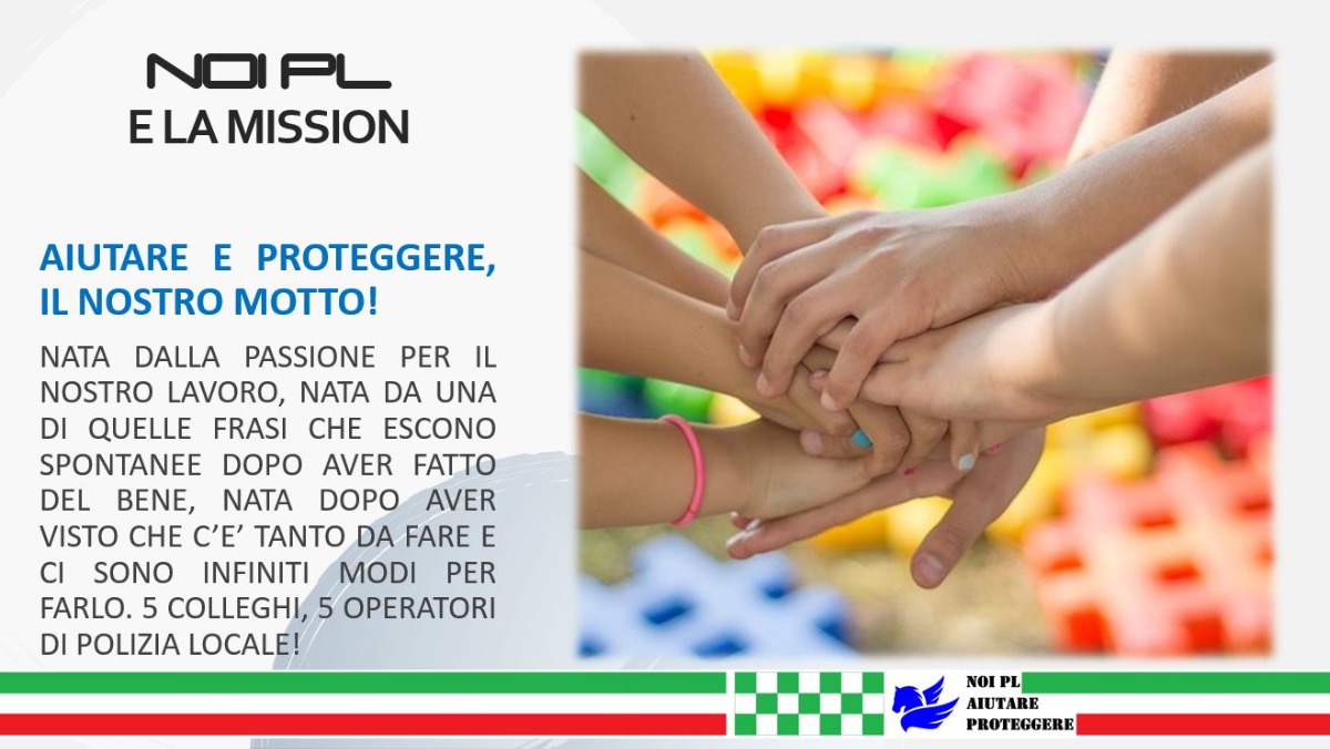 Da questa unione è nata la voglia di sostenere iniziative sociali di grande impatto e valore. Associazione Noi PL è stata fondata anche per promuovere le attività della Polizia Locale e rafforzare il legame con la comunità, cercando di mostrare che ogni agente mette cuore, passione, dedizione, rispetto ed energia nel proprio lavoro quotidiano. Polizia Locale non è solo sinonimo di "multe", ma è una grande famiglia di persone che è pronta a intervenire per chiunque ne abbia bisogno. Anche per questo motivo abbiamo creato questa nostra famiglia, l'Associazione Noi PL, ideando progetti per il benessere della cittadinanza, organizzando eventi benefici, formando i nostri fratelli di divisa ed aiutando chi ne ha più bisogno... perché "fare bene fa stare bene!"