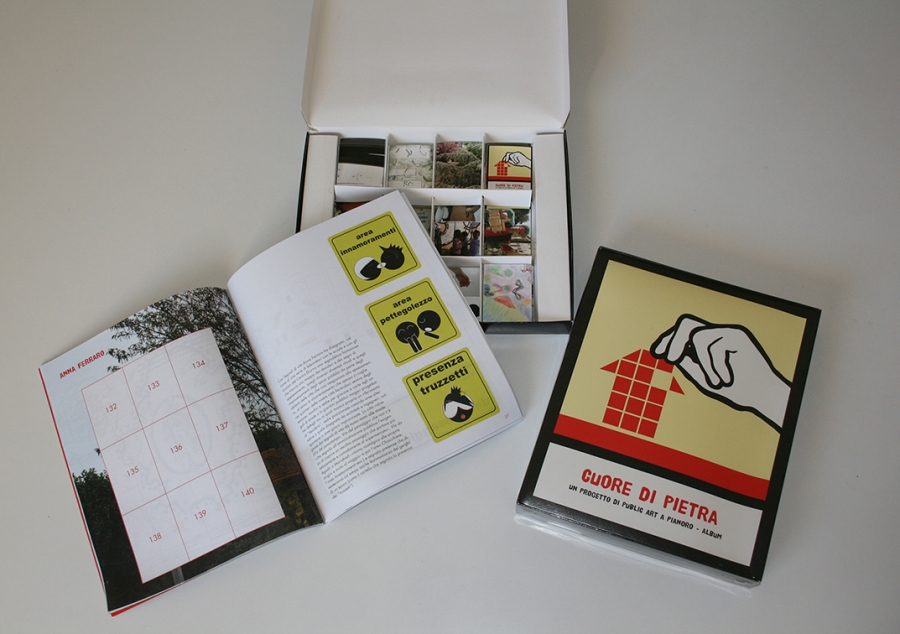 L’associazione culturale CUORE DI PIETRA, fondata da Mili Romano, artista e docente dell’Accademia delle Belle Arti di Bologna, e da un gruppo di giovani artisti e operatori culturali, è attiva da tempo nel territorio di Pianoro. L’associazione lavora a stretto contatto con gli abitanti del paese, attraverso progetti di public art sul territorio, e con un metodo che vede l’arte come strumento partecipativo di trasformazione sociale e culturale. Il progetto “Cuore di pietra”, avviato nel 2005 e tuttora in corso, ha accompagnato il processo di trasformazione e ristrutturazione urbana del centro di Pianoro Nuovo, costruendo un percorso permanente di opere d’arte contemporanea partecipata fra i primi in Italia. Al progetto Cuore di pietra hanno lavorato numerosi artisti, che hanno realizzato le loro opere in stretta relazione con il luogo e gli abitanti. Tra questi: Andreco, Alessandra Andrini, Emanuela Ascari, Annalisa Cattani, Cristian Chironi, Cuoghi Corsello, Arianna Fantin, Emilio Fantin, Anna Ferraro, Loop srl., Eva Marisaldi, MP5, Sandrine Nicoletta, Michela Ravaglia, Enrico Serotti, Daniela Spagna Musso, MonaLisa Tina, Anna Troisi, ZimmerFrei. Le opere di Cuore di Pietra sono incipit di storie, che viene voglia di farsi raccontare.