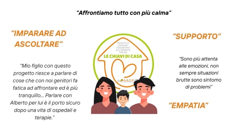 "Le Chiavi di Casa" è un percorso di supporto costruito su elementi psico-emotivo-relazionali pensato per le famiglie che hanno concluso il periodo delle cure oncologiche del proprio figlio o figlia.