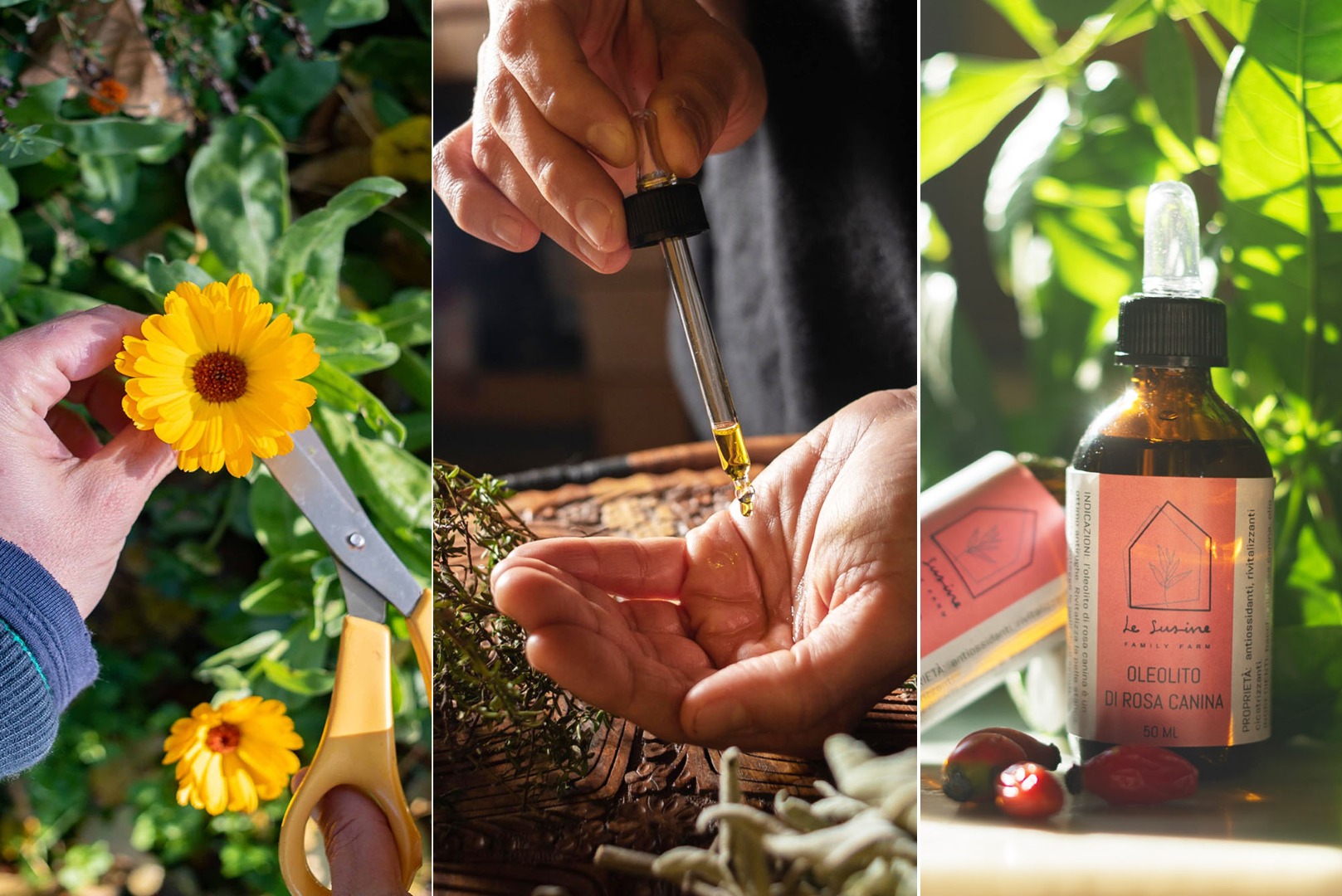 Emilia appena mise piede in questo luogo iniziò a fare oleoliti, ovvero ad estrarre in olio le proprietà di alcune piante officinali. Oggi continua a produrli, a perfezionare le ricette e a fare ricerca sulle piante.