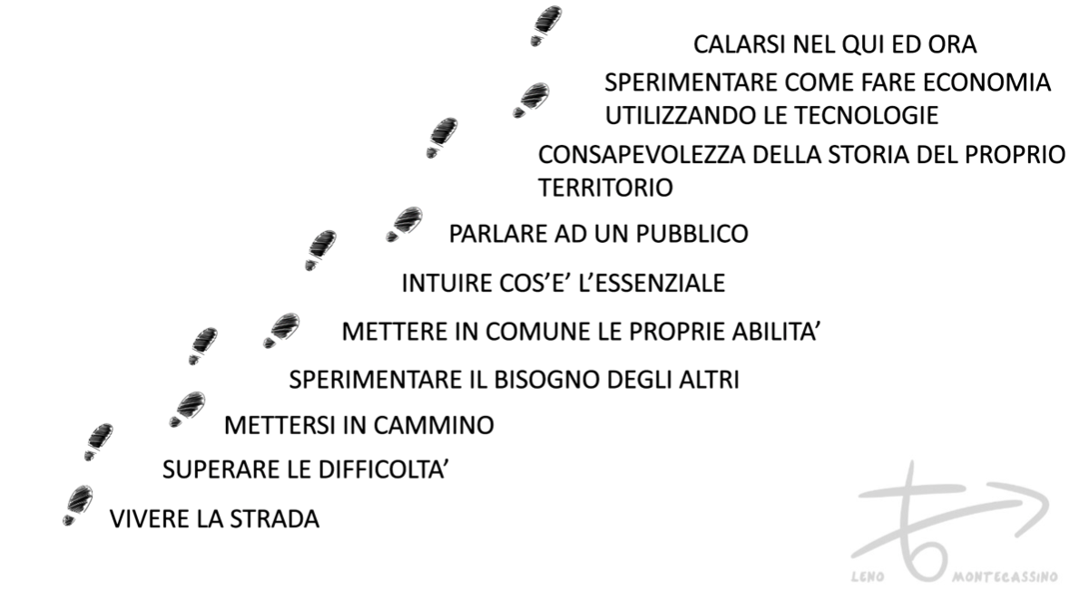 Il progetto nasce dalla volontà di far vivere un'esperienza di cammino di più giorni alla classe 3E della scuola secondaria di primo grado di Leno. Abbiamo scelto di percorrere le ultime 3 tappe del Cammino di San Benedetto e di raggiungere l’abbazia di Montecassino in quanto, anche nel nostro comune di Leno, sorgeva un’abbazia benedettina. Da tempo i due comuni sono legati da un patto di fratellanza. Porteremo con noi solo uno zaino contenente lo stretto necessario, così come facevano i pellegrini con la bisaccia. Lasceremo a casa le nostre abitudini e la realtà quotidiana per vivere appieno ciò che la strada vorrà comunicarci.