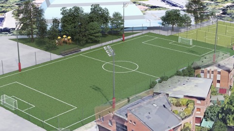 L’investimento complessivo comprende, oltre al manto in erba sintetica, il rifacimento delle panchine, un nuovo sistema di illuminazione a led, il rifacimento ed innalzamento della recinzione, spostamento della tribuna, sistemare l’area verde di fronte al campo con giochi per bimbi e attrezzi per percorsi salute nuovo, nuovo impianto audio/video, magazzino/deposito delle attrezzature sportive e nuove porte e accessori a completamento del campo comprese di gomma piuma a protezione delle zone esposte a impatto.