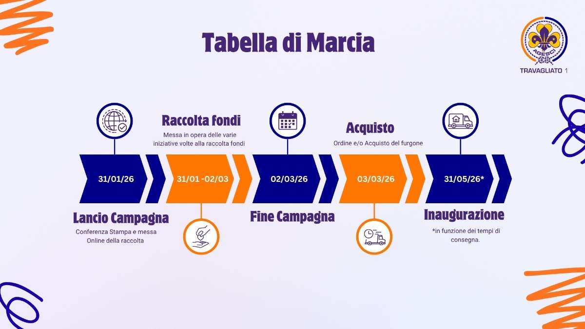 Da questo desiderio è nato il progetto “Per Strade Nuove”, un sogno semplice e concreto che vogliamo trasformare in realtà: acquistare il primo furgone del gruppo scout, un mezzo che ci permetta di vivere fino in fondo lo stile e i valori dello scoutismo.