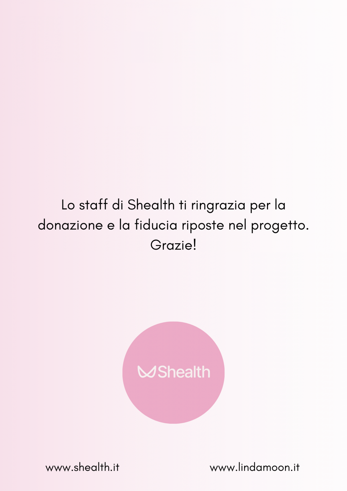 ROBERTA BISETTO - 06/05/2024Grazie Roberta ! SHEALTH è desiderio di creare INSIEME qualcosa di importante per tante donne, pur nella semplicità e nei limiti delle nostre capacità... Fondamentale per noi l'aiuto ed il cuore di tutti* voi !