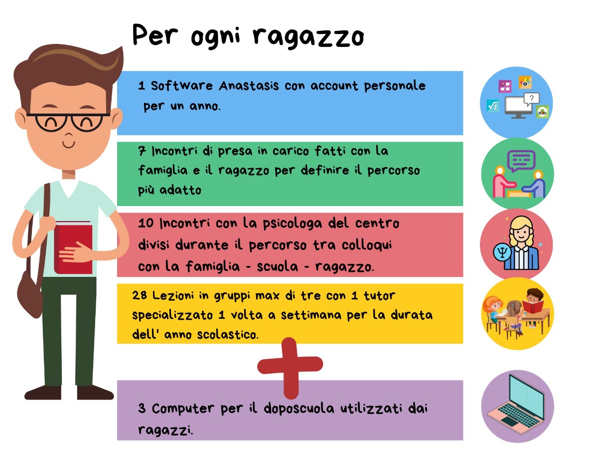 I percorsi di potenziamento sono fondamentali a questi ragazzi nel doposcuola: con l’utilizzo di software specifici e affiancati da specialisti riescono a trovare il loro metodo personalizzato di studio, aumentando la loro autostima.