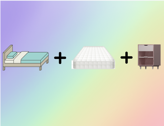 Un kit compreso di letto, materasso e comodino ha il costo di 300 €.