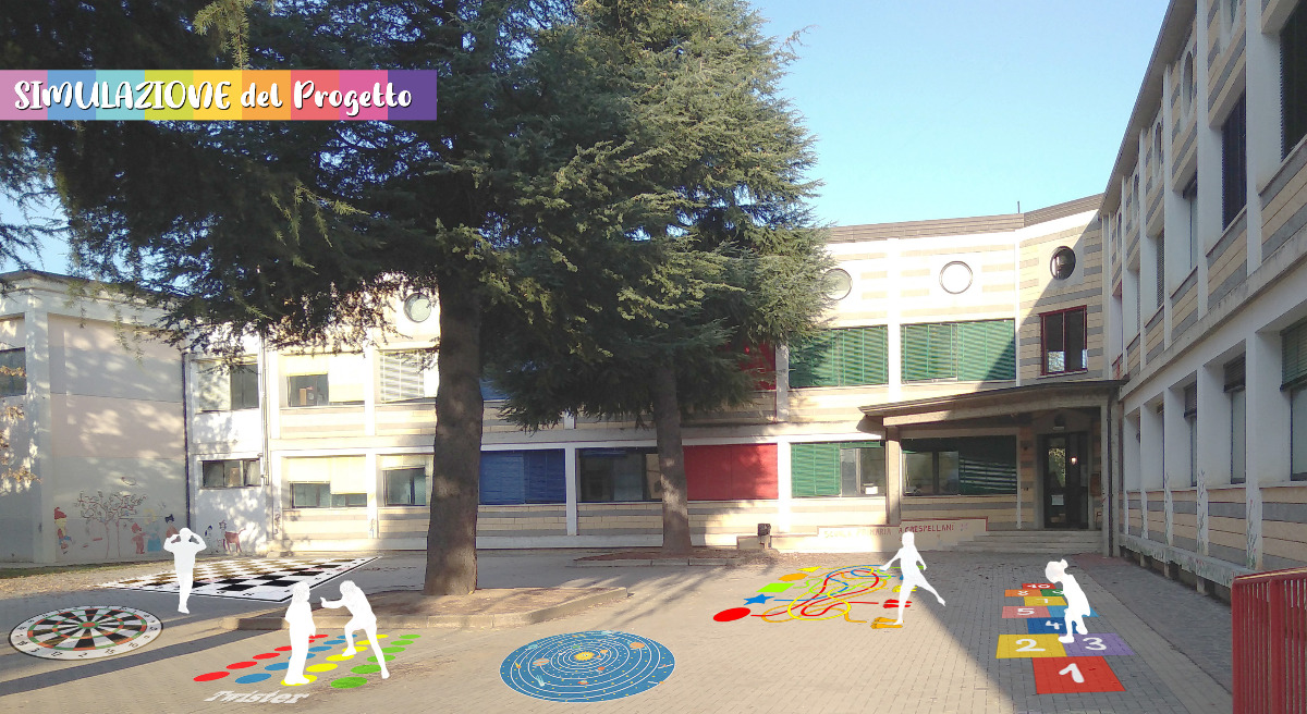 Con i fondi raccolti incaricheremo pittori con apposite competenze di decorare i cortili delle due scuole dando vita ai disegni degli alunni. Il risultato sarà simile alla versione “simulata” che vedi qui sotto. Bello vero?